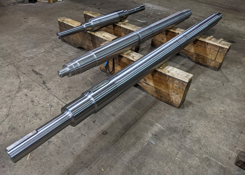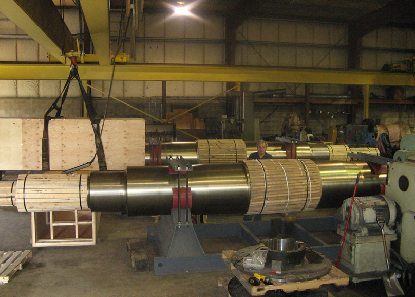 Some of the various types of shafts we machine include but are not limited to: fan shafts, drum shafts, eccentric shafts, crank shafts, crusher shafts, mandrel shafts, swing jaw shafts, pinch rolls, drive shafts, head shafts, leveller rolls, turbine shafts, generator shafts, auger shafts and tie bars.